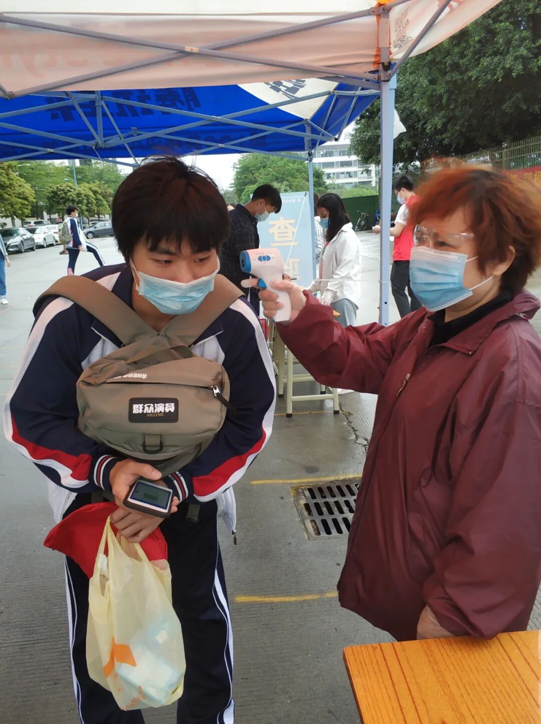 测温区测量体温并登记,体温低于37.3℃视为正常