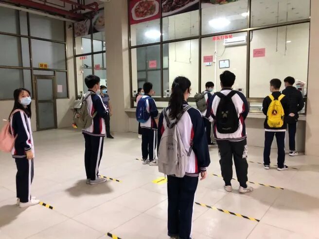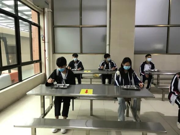 学校饭堂采用分批就餐制,安排师生分批、分时段地避峰错时就餐。