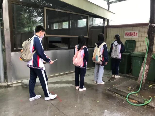 教师组织学生错峰下楼前往饭堂排队,饭前饭后严格按照“洗手七步法”科学洗手,做到不在饭堂逗留、不扎堆交谈。