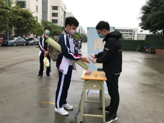 学生消毒双手、行李箱