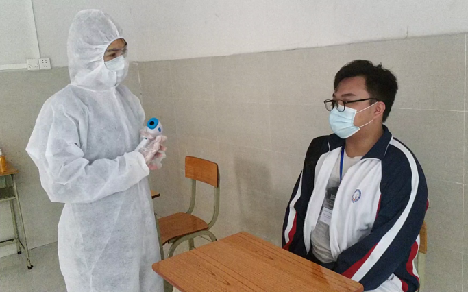 校医询问体温异常学生情况